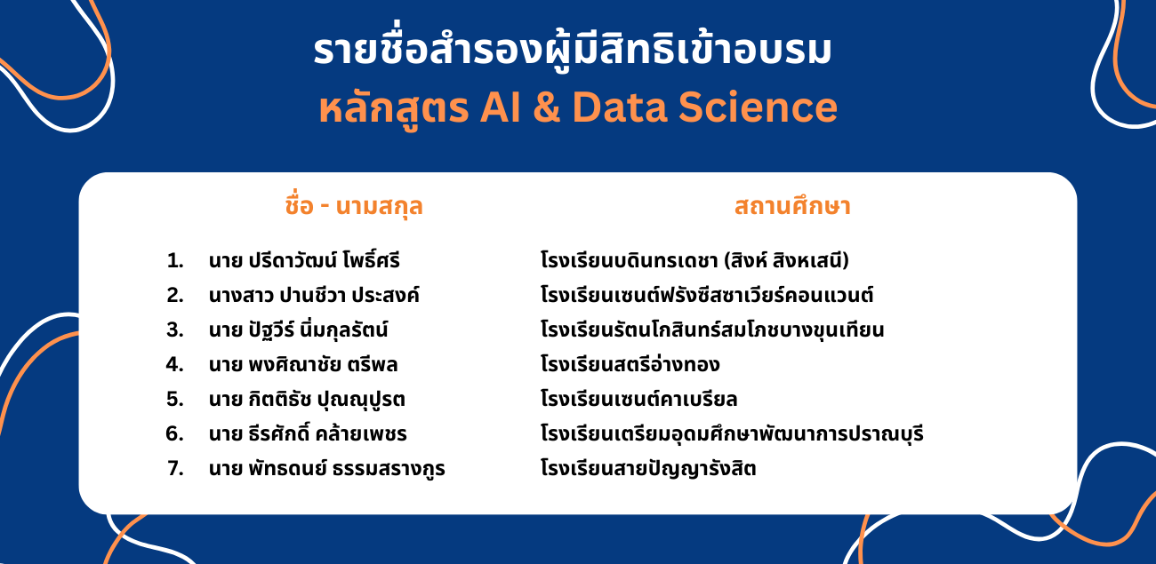 ประกาศรายชื่อผู้มีสิทธิเข้าอบรม หลักสูตร Robotics (1)